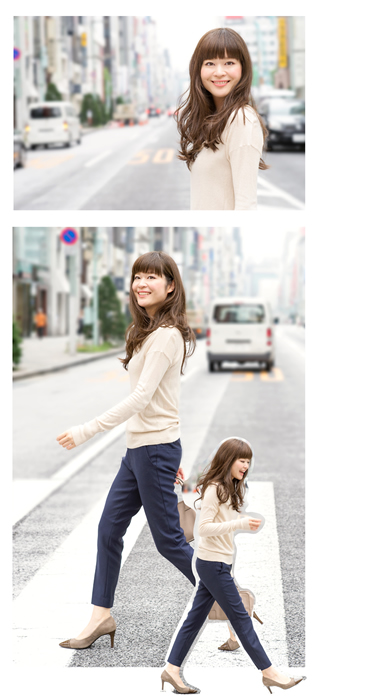 伸ばしていく予定ですが、髪の量はまとまりやすいように調整しました。前髪も長めだけど頭が小さくキレイに見えるように、奥行深めにとっています。 | ||