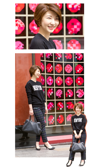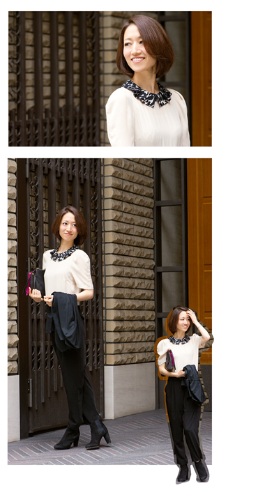 ママだけどオシャレに見えるように、エレガントにしすぎない感じにしました。トップが最近ペタッとしてきたとおしゃっていたので、後ろがふんわり見えるようにシルエットを大切にしました。トップの部分と根本を立ち上がるようにドライして、ふんわりと。簡単スタイルに! | |